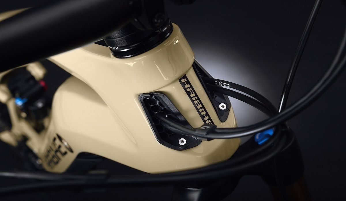 Petit détail agréable sur le cadre : de petites grilles d’aérations sont placées sous la potence. L’objectif est de créer un courant d’air qui vient refroidir la batterie, elle-même intégrée au cadre. Haibike profite également de cette ouverture pour y faire passer les divers câbles de freins et d’électroniques afin de rendre le vélo plus épuré et plus propre.