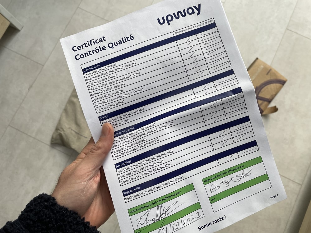 On a eu l’occasion de tester les services d’Upway en commandant un vélo reconditionné, et globalement c’est un 9/10 ! Le fonctionnement d’Upway repose sur un processus rigoureux de remise à neuf : chaque vélo est soigneusement inspecté, réparé et testé par des experts pour garantir sa qualité et sa fiabilité. Si vous voulez en savoir plus, je vous conseille de lire notre avis complet sur Upway.